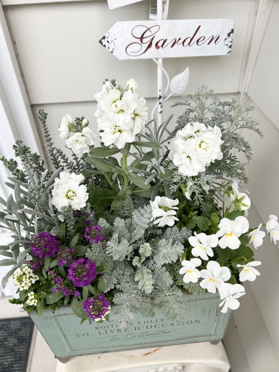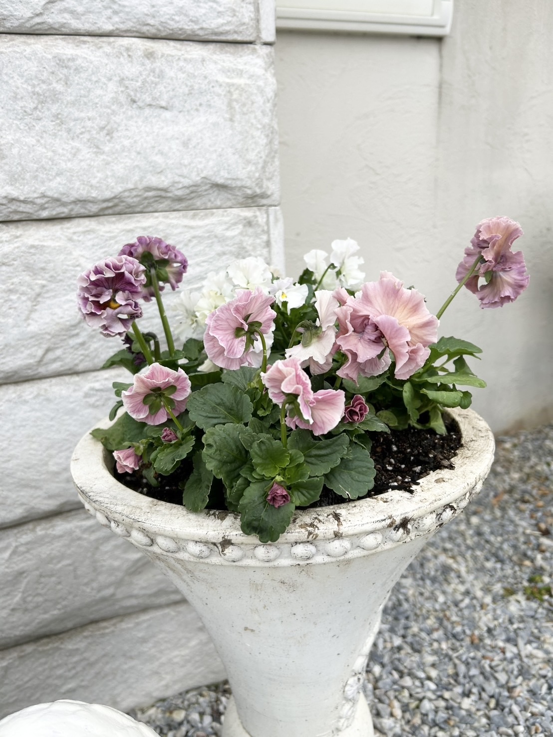 主人からはお金を頂いたので、たくさんのビオラとアンティークのテーブルを買いました♪