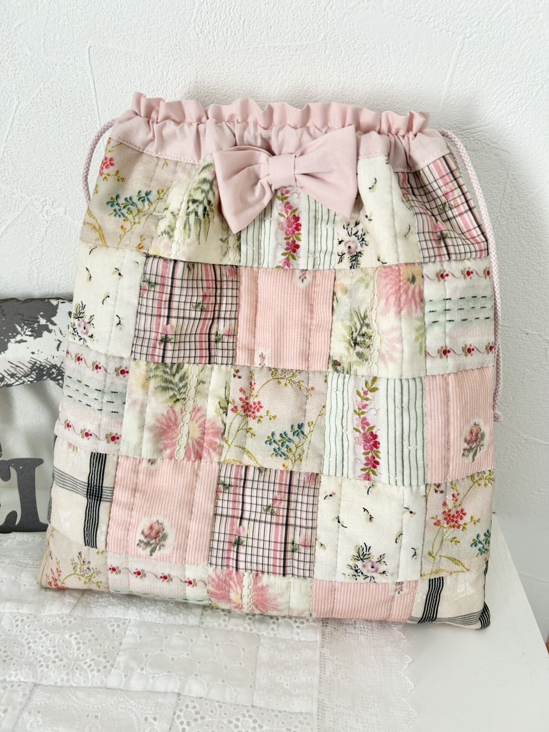 お客様にパッチワーク柄のピンクの生地でも作ってください。とリクエストを頂きました♪