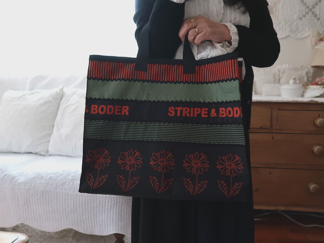 小関鈴子さんの生地を使い、ジャバラテープを付けておしゃれに作りました。