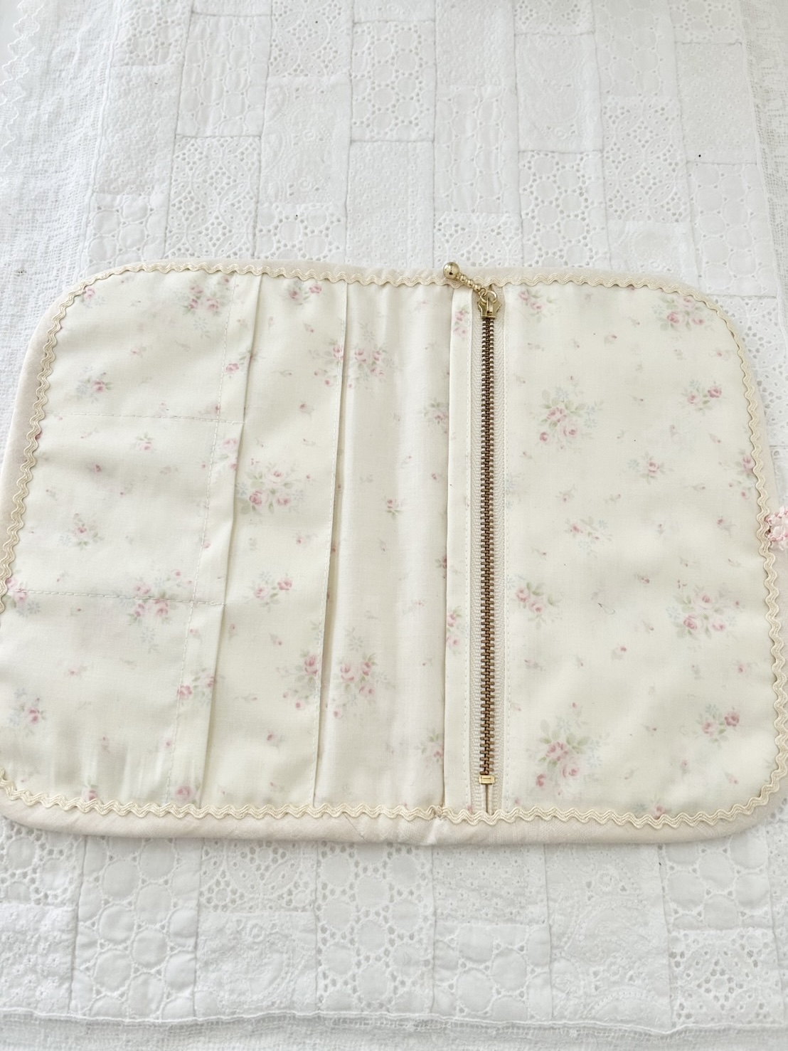 チュールレースを使い、フェザーステッチにビーズもついていて素敵ですよ。