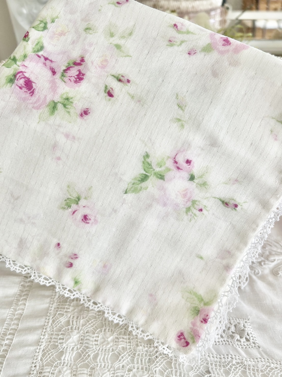 こちらの生地を使ってハンカチを作りました。