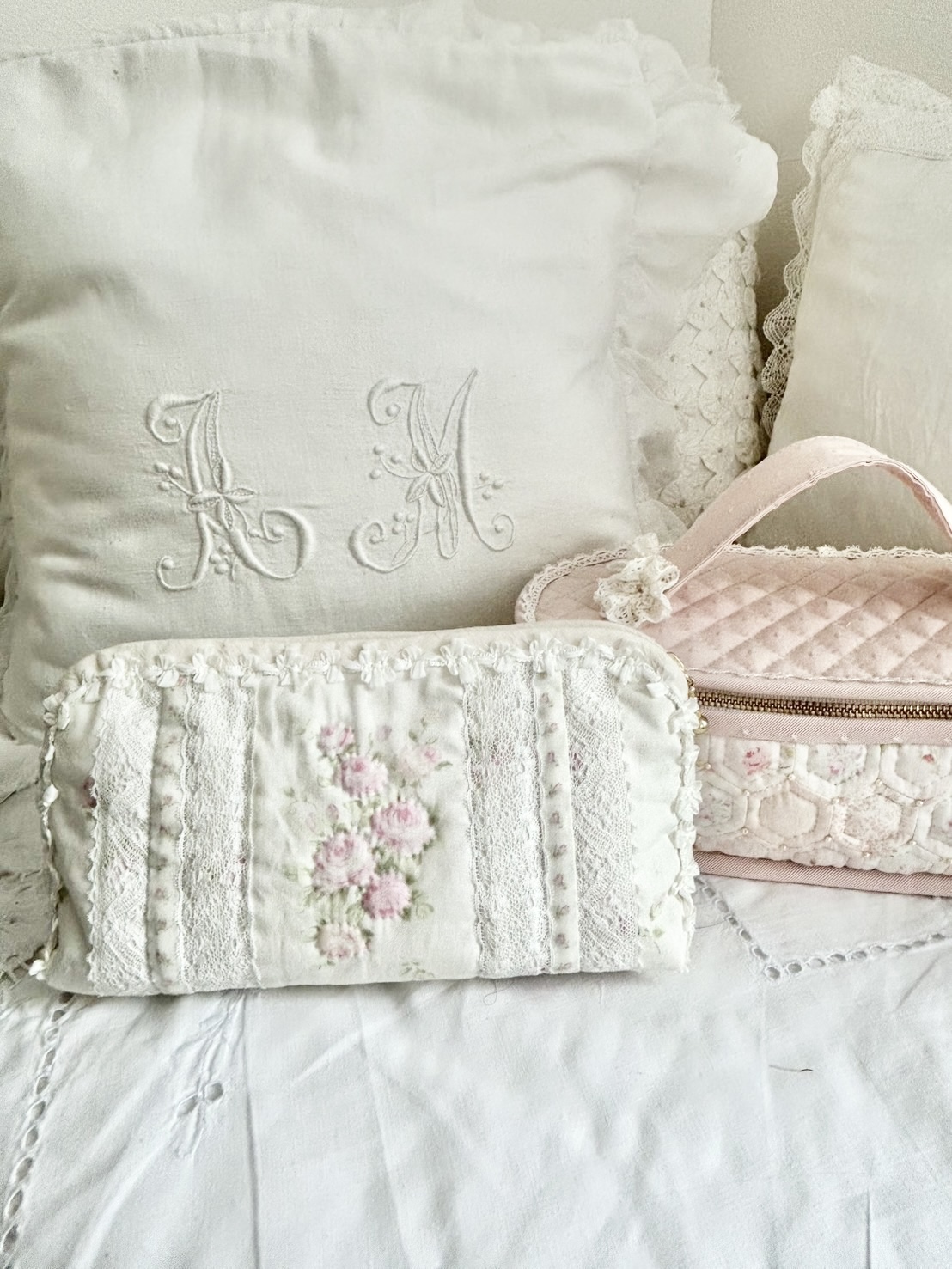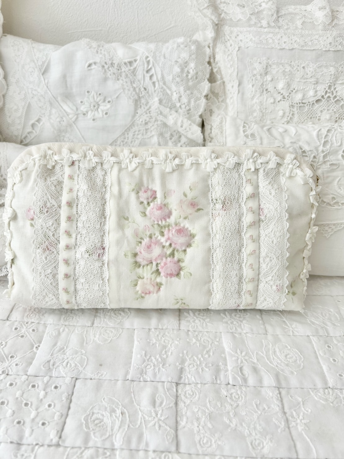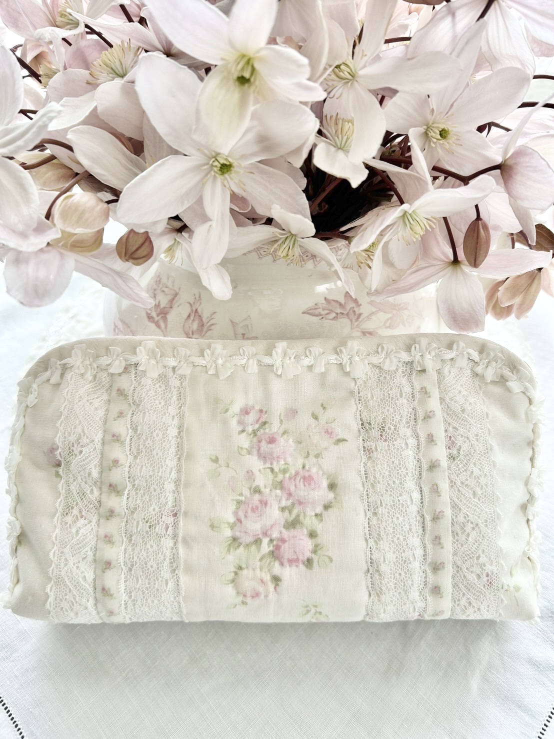 可愛いローズ柄の生地を使ってポーチを作りました♪