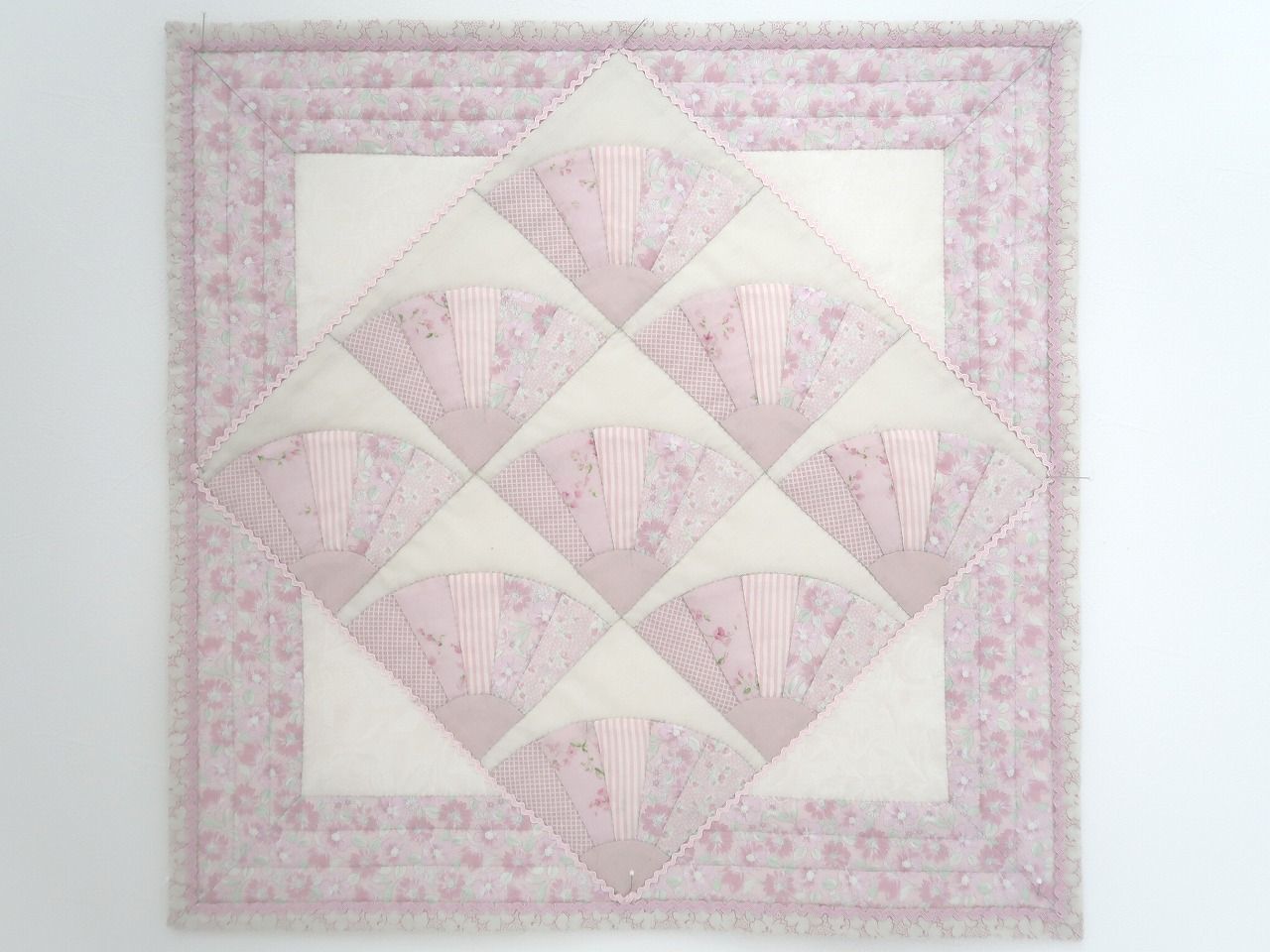可愛いオフピンク系の生地で扇のパターンを作りました。