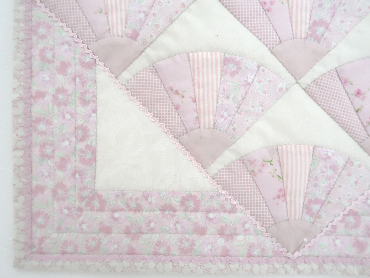 可愛いオフピンク系の生地で扇のパターンを作りました。