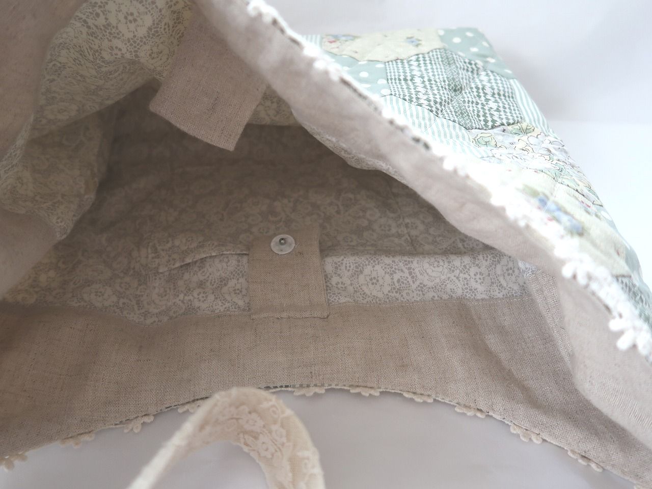 底と見返し部分は麻の生地を使用しております。