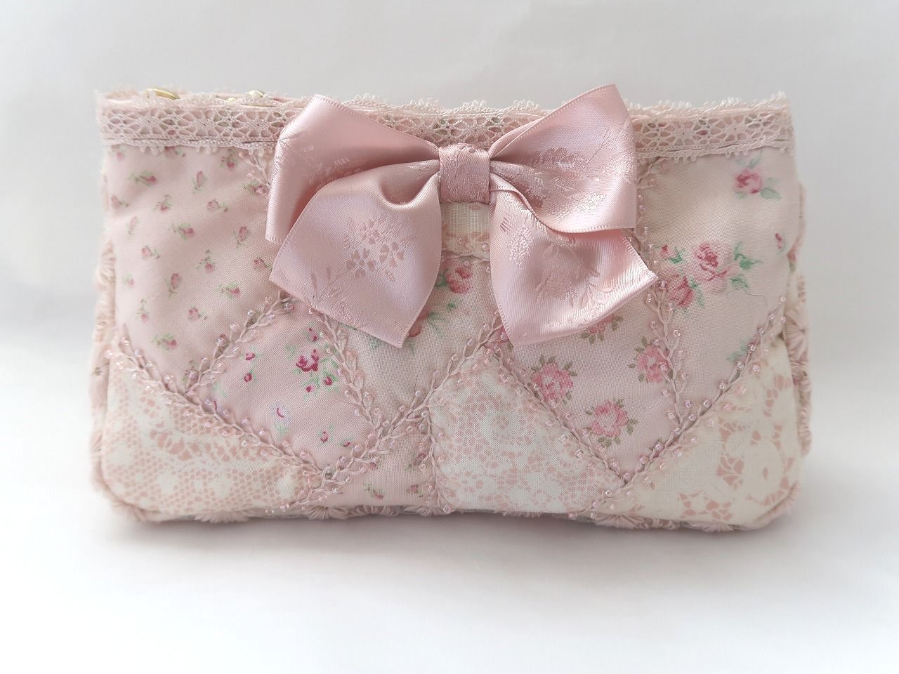 中央についたリボンが可愛いポーチです♪