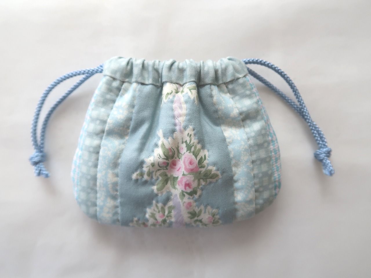 (Purse-030)バスケット柄 ミニきんちゃく【ブルー】キット