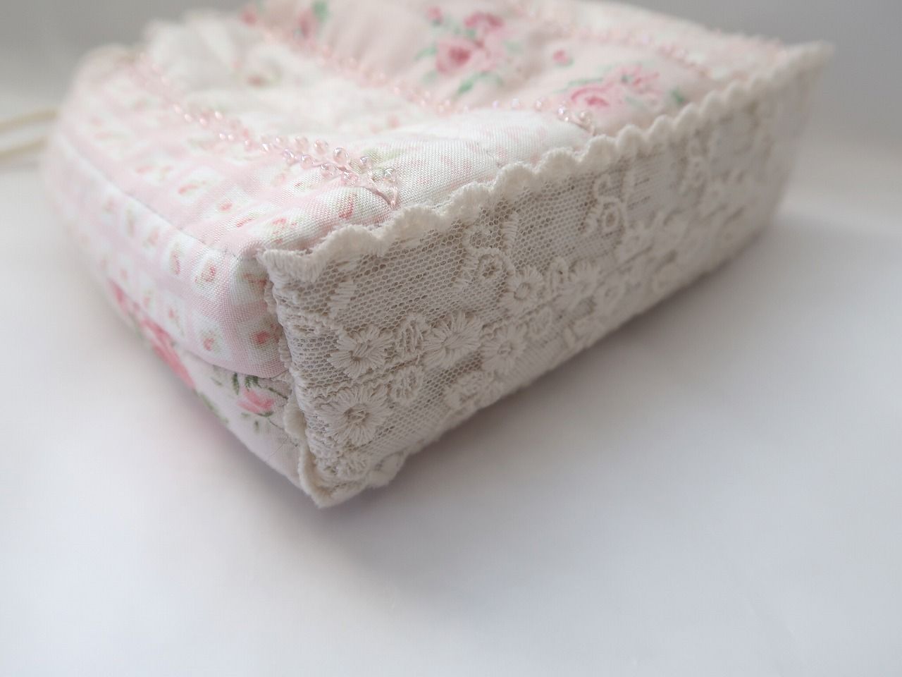 口部分と底にはチュールレースがついています。