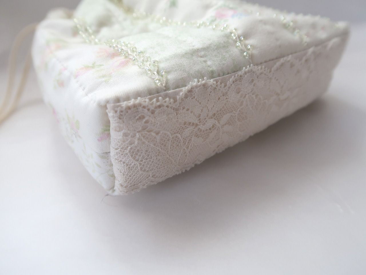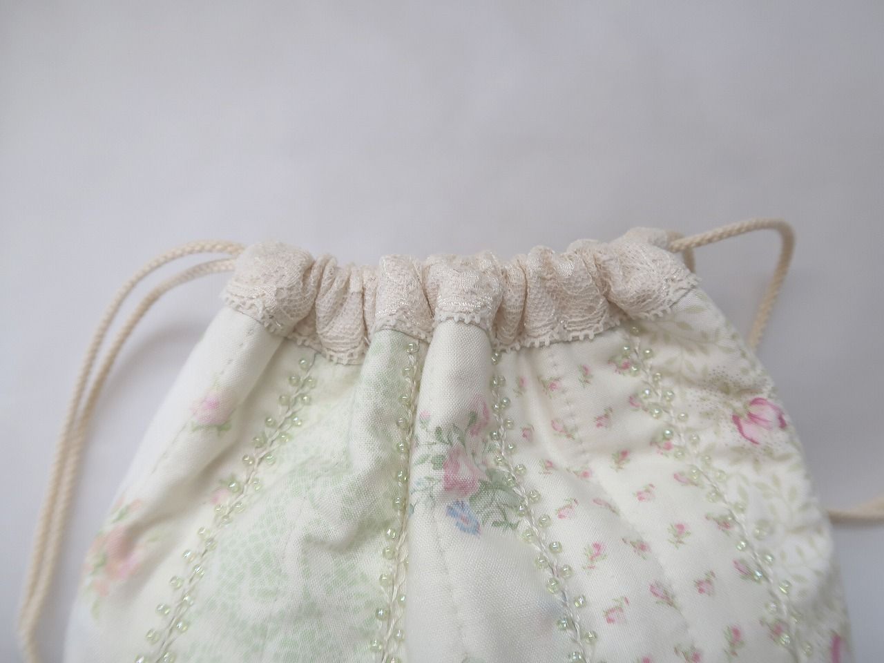 フェザーステッチにビーズが可愛いきんちゃくです。